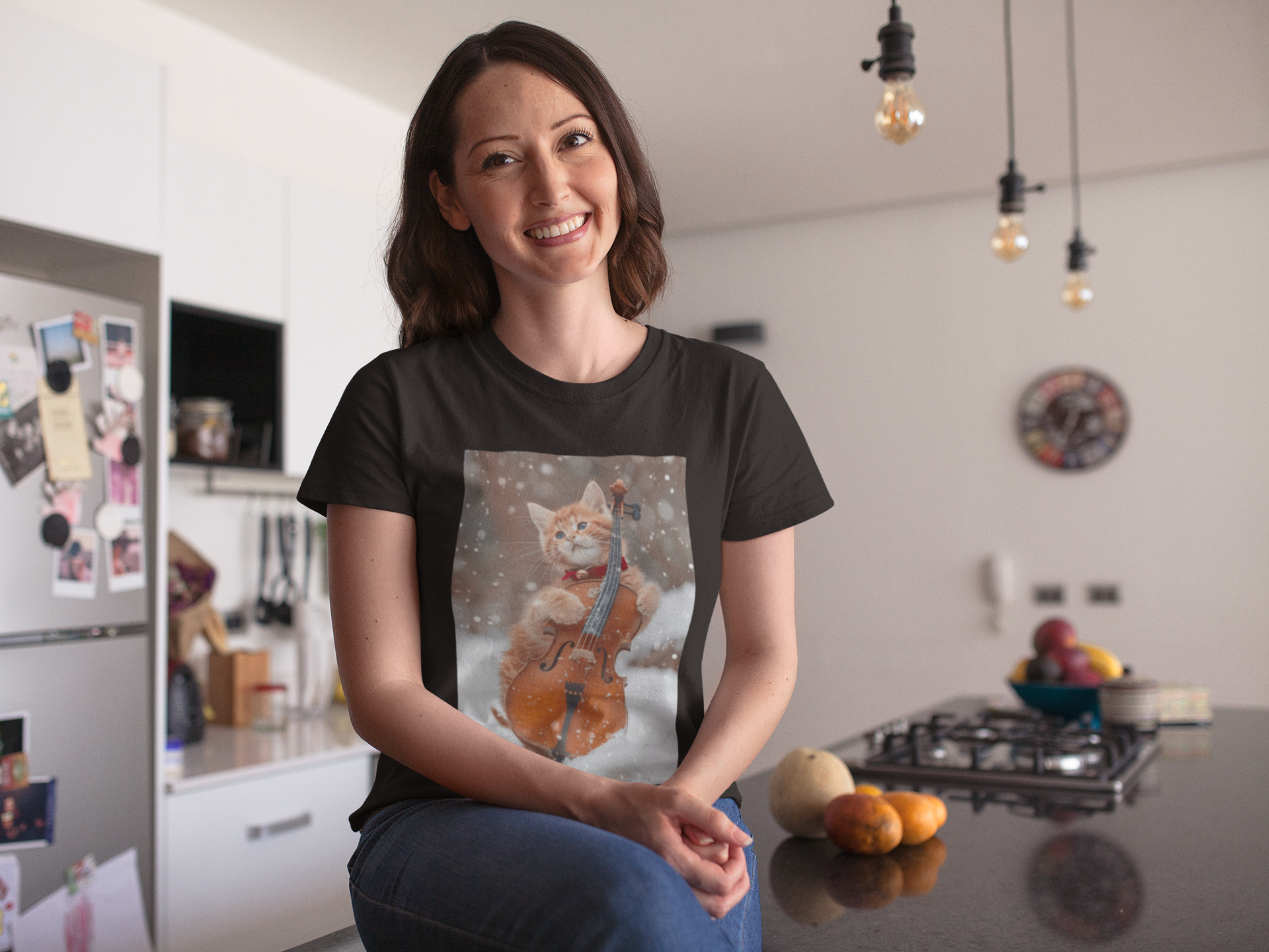 Picture Of A Cat And A Violin - Unisex Cat Graphic Tees | Graphic T Shirts